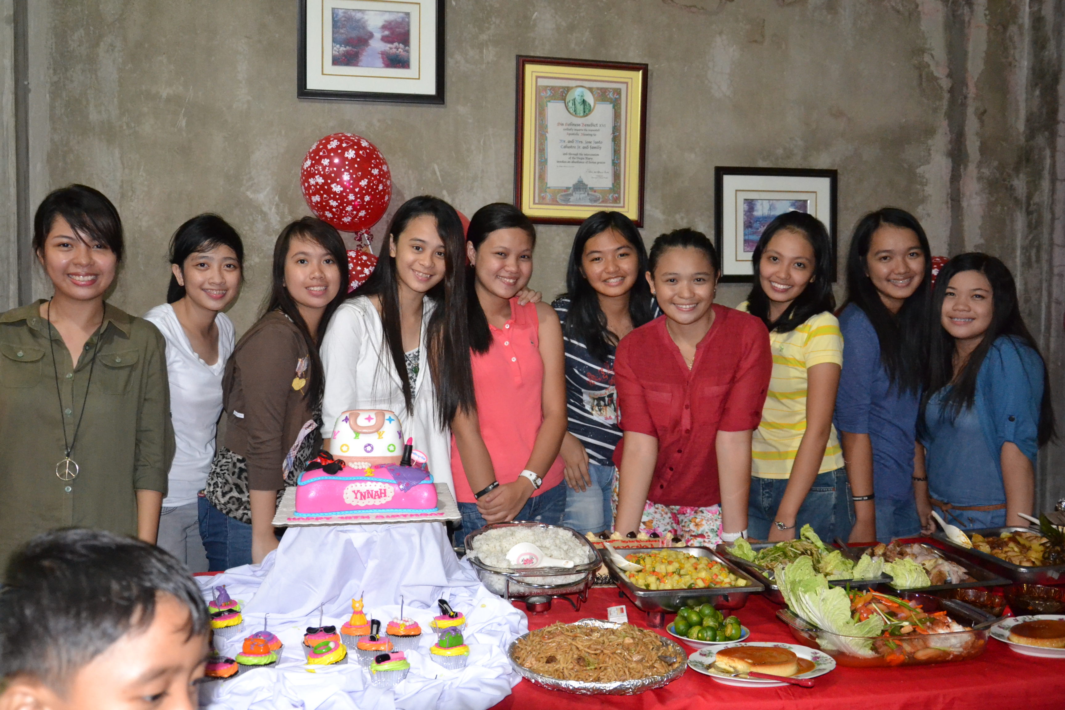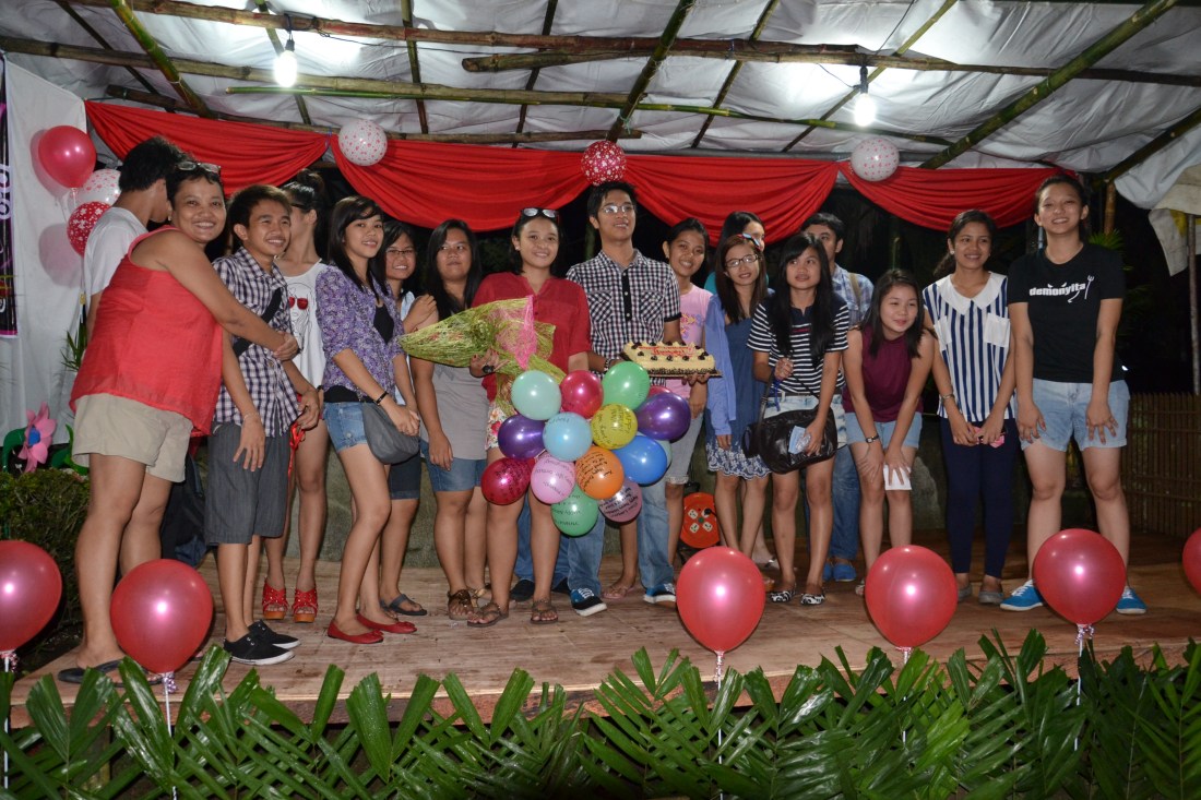 September 22,2012 3pm onward The party was to start at 6pm but we ( Maree, Angela, Kim) decided to help so we went in their house first. We thought that  she needs help in preparing things like decoration, food or something but it turns out every thing was under control. Her house was kinda big enough for 50 people so it’s good. There would be a band playing too. At 6pm Angela and Maree went back to Centro to picked up the guests which were Czarinna’s college friends. Batch mates? Unfortunately, there were two parties at that day, one was Chenchen’s <– batch mate and Czarinna’s so our high school friend had to go there first and we just picked up them later that night. The party started as soon as the guests arrived. Czarinna’s college friend got a surprise for her and we were like ‘best friends here’ cause we got nothing surprise for her.