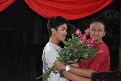 Anyways, after that we ate andddddddd the food was great! Every one got like second serving and the dessert HEAVEN! After those delicious moments of my life, we   went outside again and listened to the band playing and we kept talking and talking. And we got this AWESOME idea! Why don’t we let her crush come into the party since we were going to picked up the boys later that night anyway why not let him come and that’ll be the most surprising and unexpected gift for her. Genius, right? Anyways, we planned everything and make sure that Monching(Czarinna’s crush) come to the party =). Angela and I went to picked up the boys in Magsaysay. When I saw Monching, I was like OMG he’s cute. It’s just that it’s the first time Czarinna actually has had a crush on a cutie =))). When we arrived at Czarinna’s we prepared the boys for the 18 Roses and I went to the DJ for the music and that’s it. Her daddy was her first dance and her favorite kuya was the second and so on. 11,12,13,14,15,16,17 …………………….MONCHING